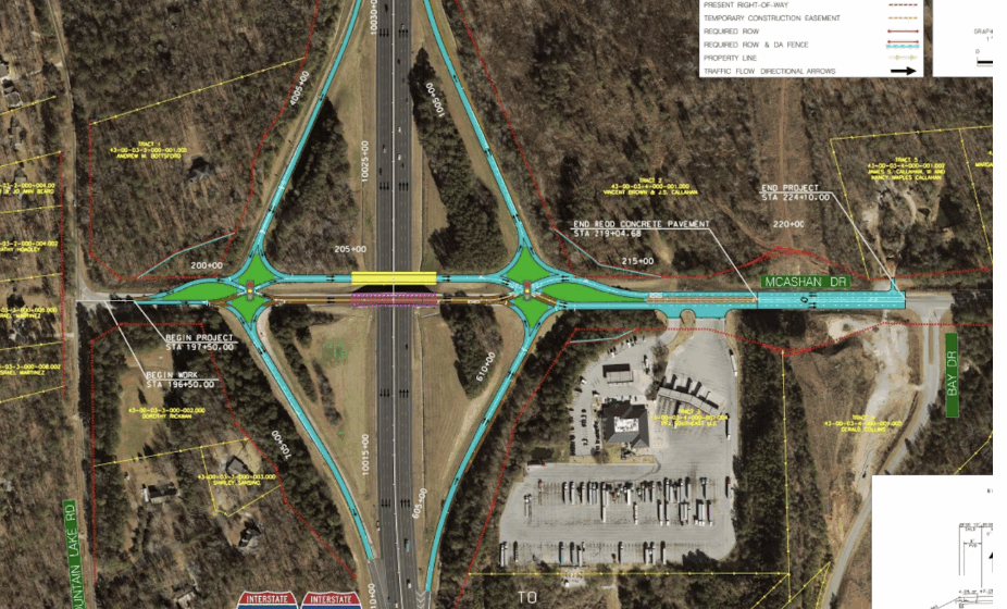 The Alabama Department of Transportation announced a $22 million Diverging Diamond Interchange (DDI) at Exit 104 on Interstate 59/20 at McAshan Drive. This modern design, first installed in Springfield, Missouri, in 2009, allows drivers to make all left turns without crossing oncoming traffic. ALDOT says the DDI is both cost-effective and safer than conventional intersections.