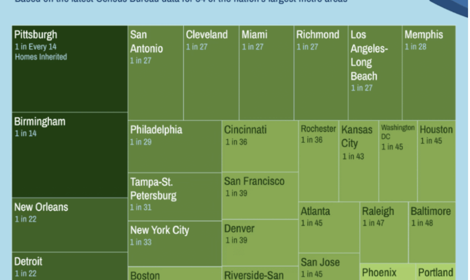 Real estate analysts say a high rate of inherited homes can indicate a more stable housing base, where families tend to stay in the same neighborhoods for generations. It can also affect supply, since inherited homes are less likely to be listed for sale in a given year, potentially tightening availability in certain areas of the metro.